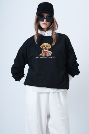 Önü Baskılı Oversize Pamuklu Sweatshırt